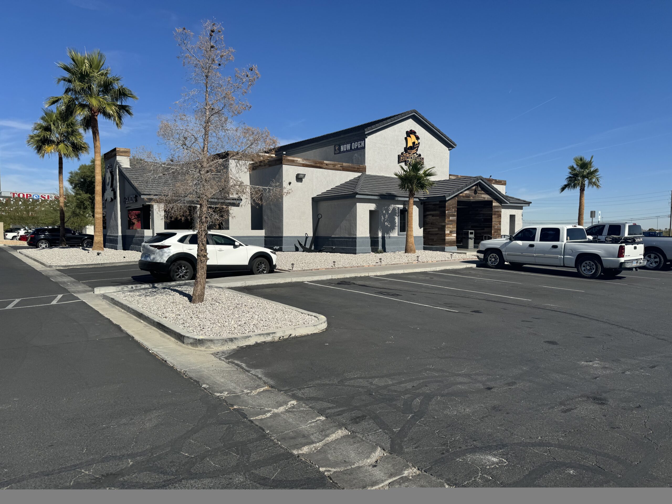 This project involved the Tenant Improvement of an existing bar/restaurant, including minor demolition and the replacement of all finishes. The existing bar die wall was preserved and upgraded with new stone tops. A new TV rack was installed as well as additional tv locations around the bar. Additionally, a new bi-fold glass door was added to the existing patio as part of the exterior remodel. The exterior transformation also included new wood finishes, synthetic slate roofing, paint, and lighting.